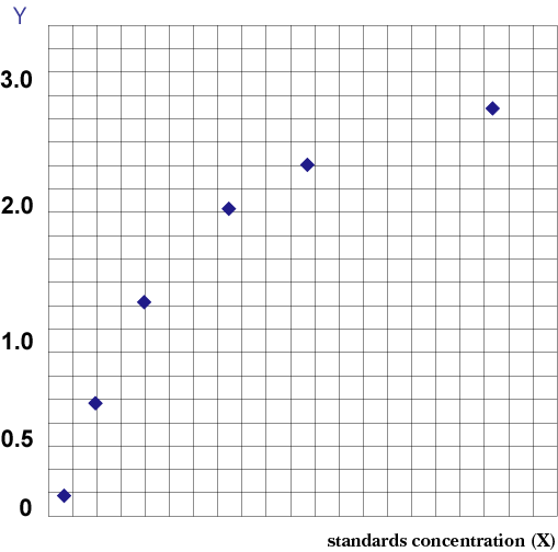 1. This standard curve is used to determine the amount in an unknown sample. The standard curve is generated by plotting the average O.D. (450 nm) obtained for each of the six standard concentrations on the vertical (Y) axis versus the corresponding concentration on the horizontal (X) axis.